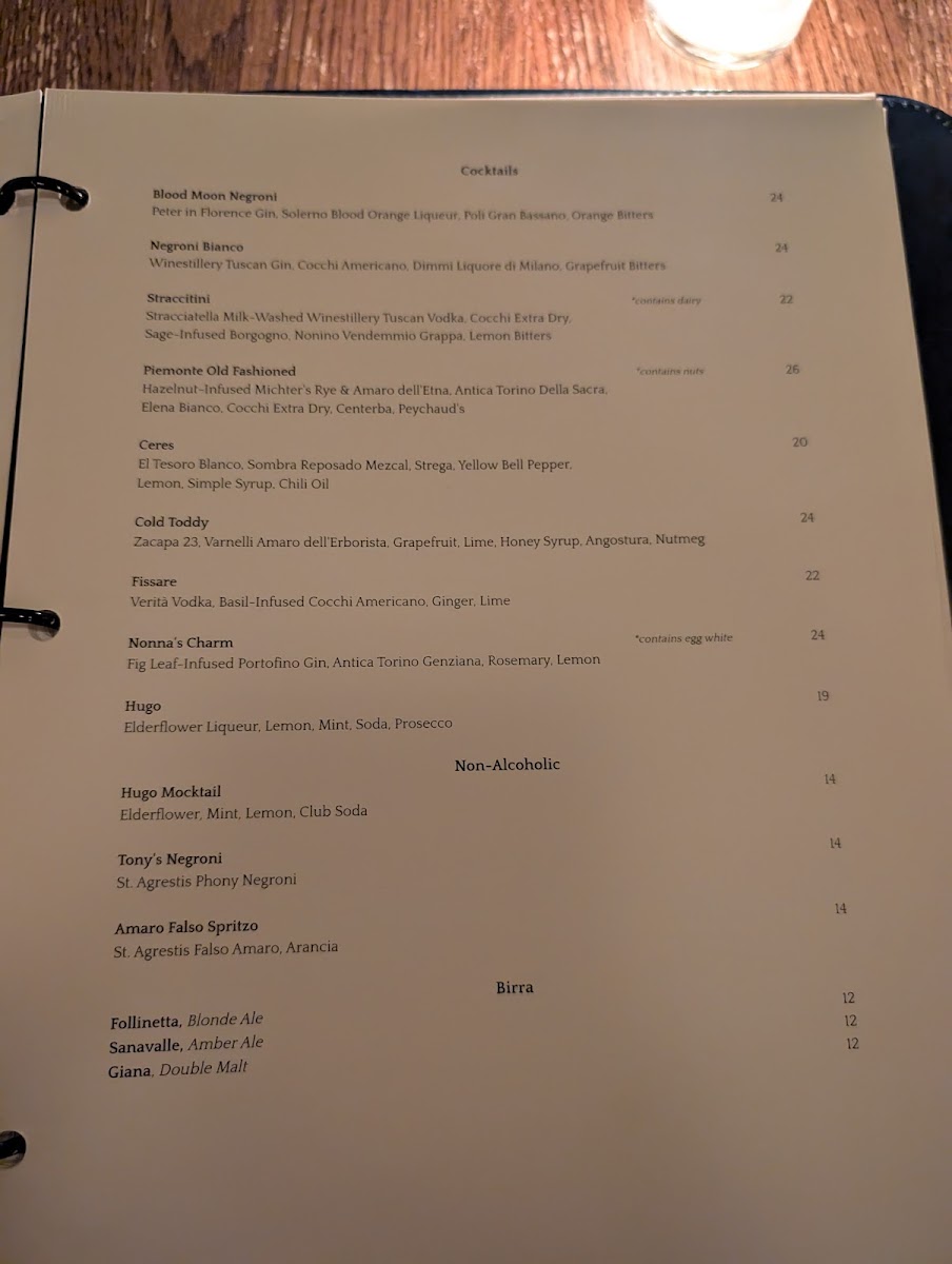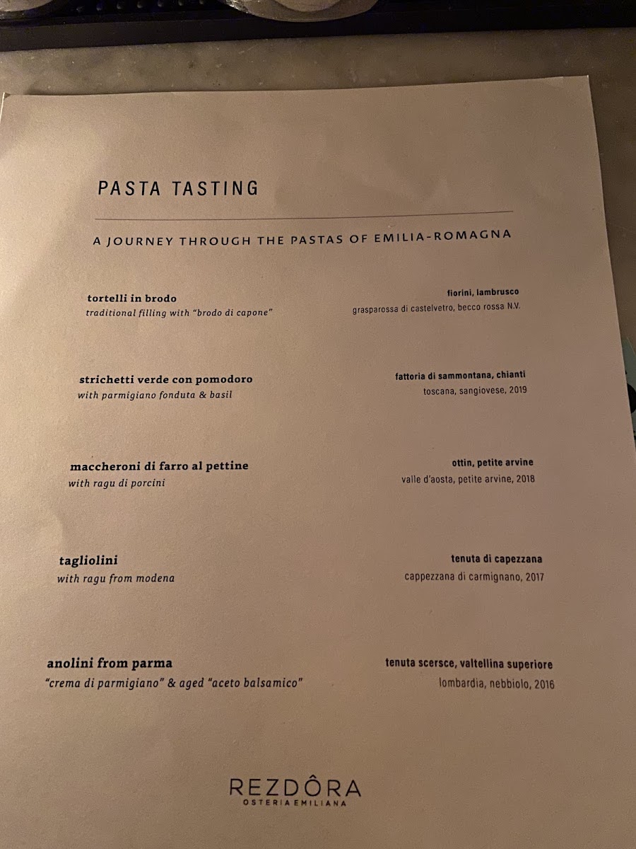 Rezdora offers an exceptional pasta tasting menu, featuring five pasta course for 98--absolutely worth it. Each pasta is cooked to perfection and bursting with flavor. Be sure to order the Affettati Misti; it's some of the best prosciutto I've ever tasted. The cocktails are well-made, and the wine selection is extensive, making it an ideal spot for date night. I'd love to return to explore more of the menu!