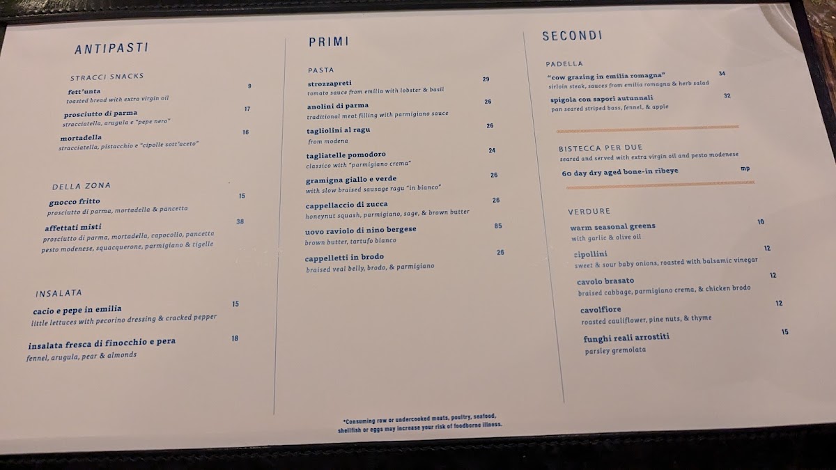 I watched a video of this place from Bon Appetit on YouTube so I figured I would check it out! I started off with Burrata with Prosciutto, for my second course I had there Uovo Raviolo with White Truffle & Asparagus Puree. The last course I ordered there Cappelletti verdi with roasted, sauteed leeks & black mushroom puree. Very impressed with everything and my server Sierra was very attentive. Highly recommend this place, you will not be disappointed!